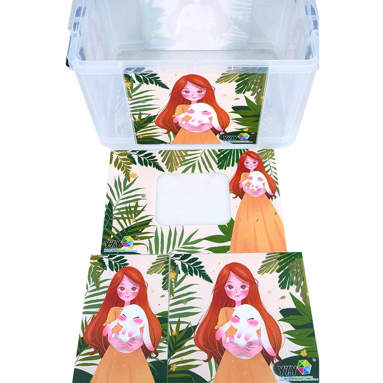 このトート ボックス射出成形インモールド ラベルの競争上の利点は、従来の粘着ステッカーと比較して、インモールド ラベルの耐久性が高いという点です。射出成形と一体化プロセスにより、時間が経っても脱落したり、反ったり、磨耗したりすることがありません。頻繁に扱ったり拭いたりしても、表面の装飾層はそのまま残ります。第二に、デジタル印刷技術と比較して、YZY は費用対効果が優れています。トートボックスなどの大型ラベルの場合、金型が合わない、IMLロボットの静電気が付着しない等のトラブルが発生しやすくなります。 YZY は、10 年以上の生産経験を通じて、数え切れないほどの顧客のこれらの問題を根本から解決してきました。ラベルは金型のサイズに合わせて正確にカットされており、IMLロボットの静電気の侵入を防ぐために厚すぎない適切な厚さを持っています。